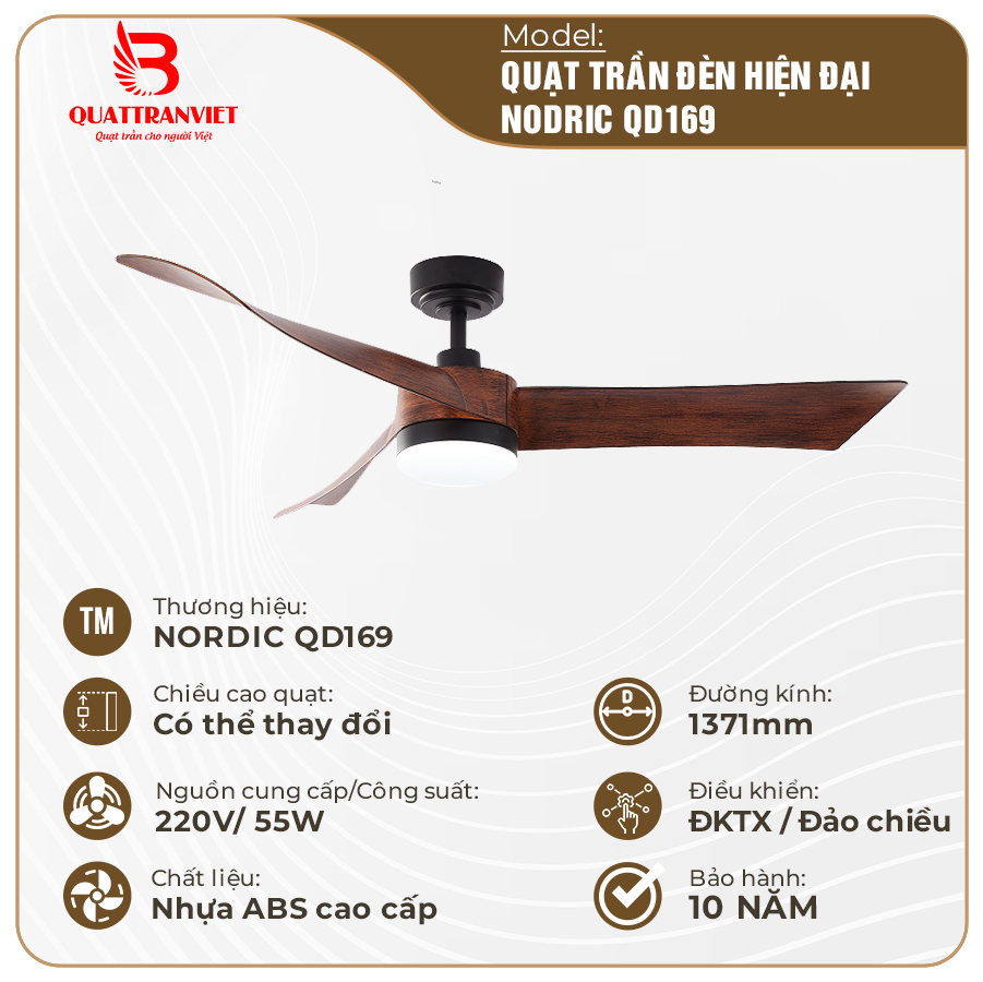 Quạt Trần Đèn Hiện Đại Nodric QD169